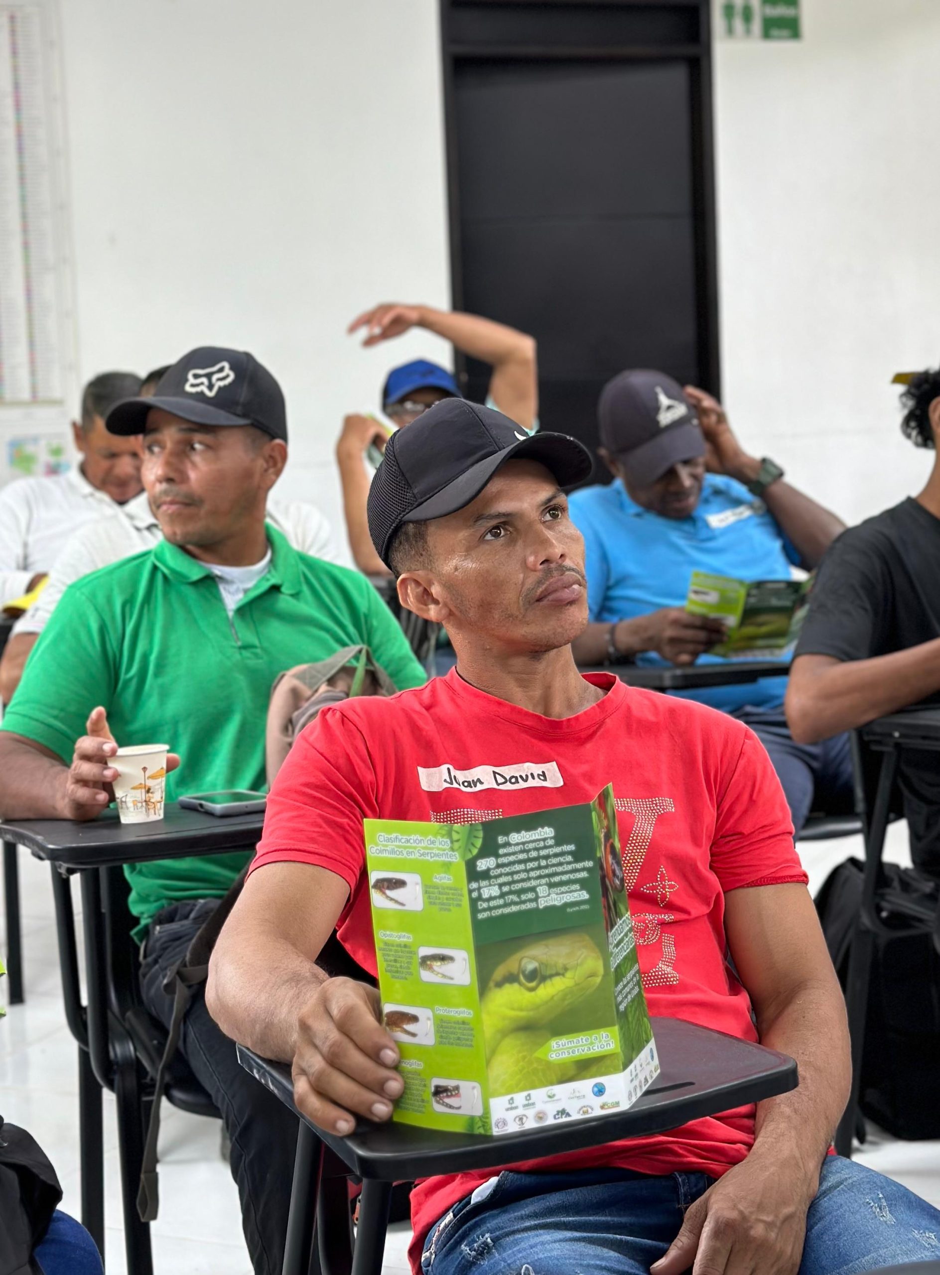 Los asistentes mostraron un gran interés y curiosidad, convirtiéndose en un grupo muy activo y participativo. Además, se distribuyeron kits que los participantes llevarán a sus fincas, para brindar la atención necesaria a cualquier serpiente que pueda aparecer y, en caso de ser necesario, contactar a las autoridades ambientales.