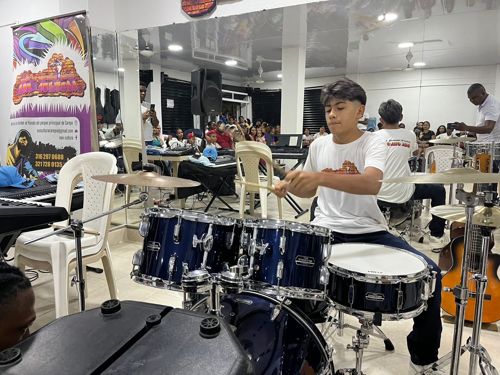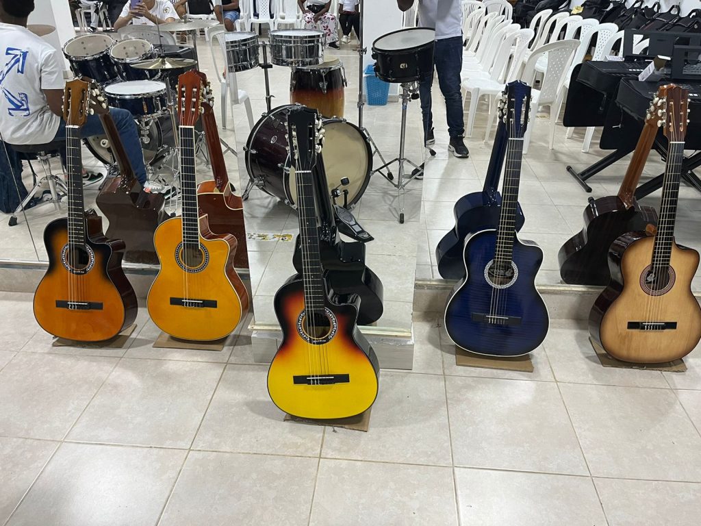 En la ceremonia, se entregaron valiosos instrumentos musicales, que incluyen tres teclados electrónicos Yamaha, una base para teclado, cuatro guitarras acústicas, guitarras electroacústicas, dos micrófonos inalámbricos y cargadores para baterías, entre otros materiales, con un valor total superior a 15 millones de pesos. Esta es la segunda dotación de implementos musicales que la fundación brinda a Son Cultura, reforzando su compromiso con el desarrollo artístico y cultural de la comunidad.
